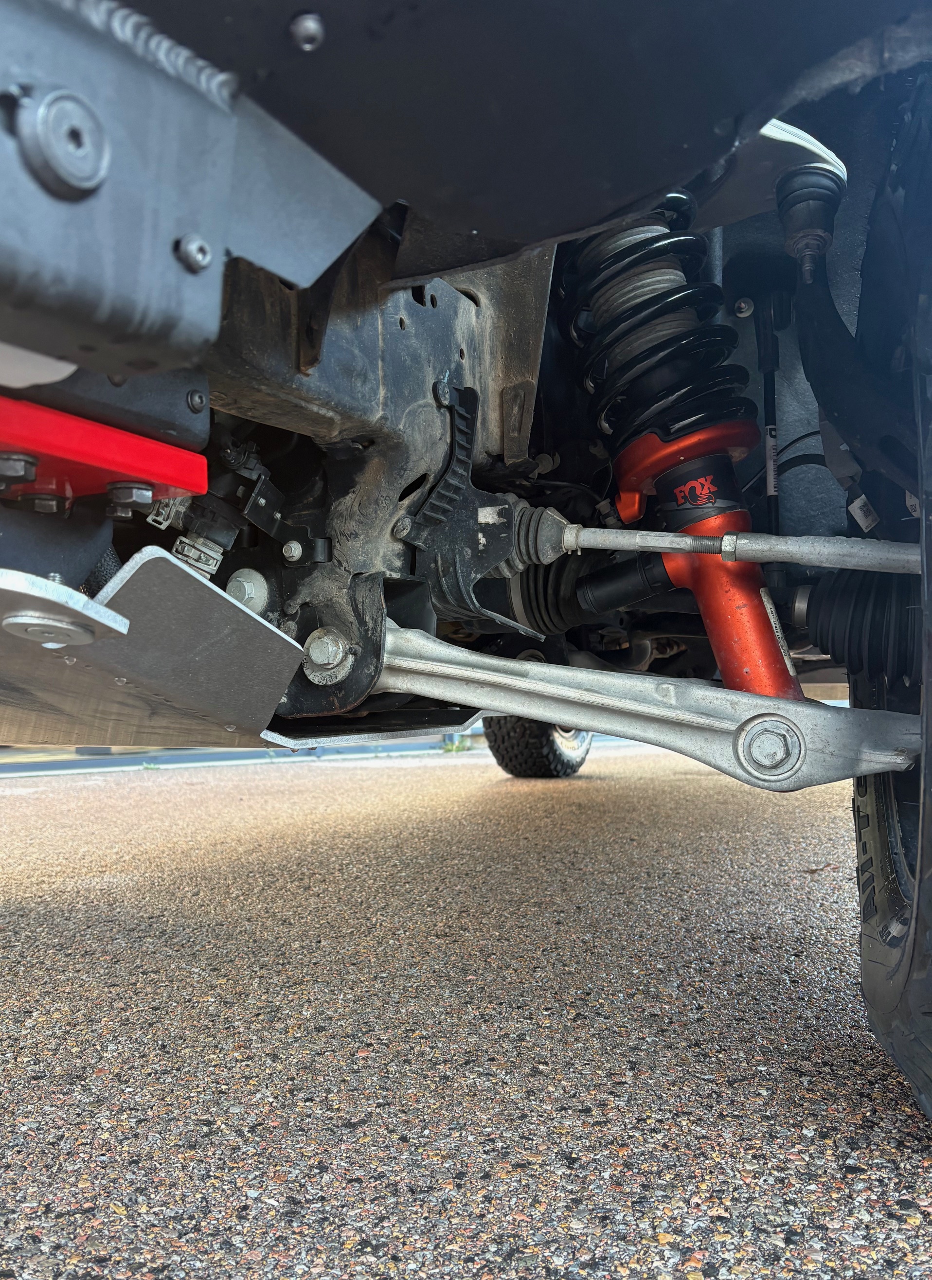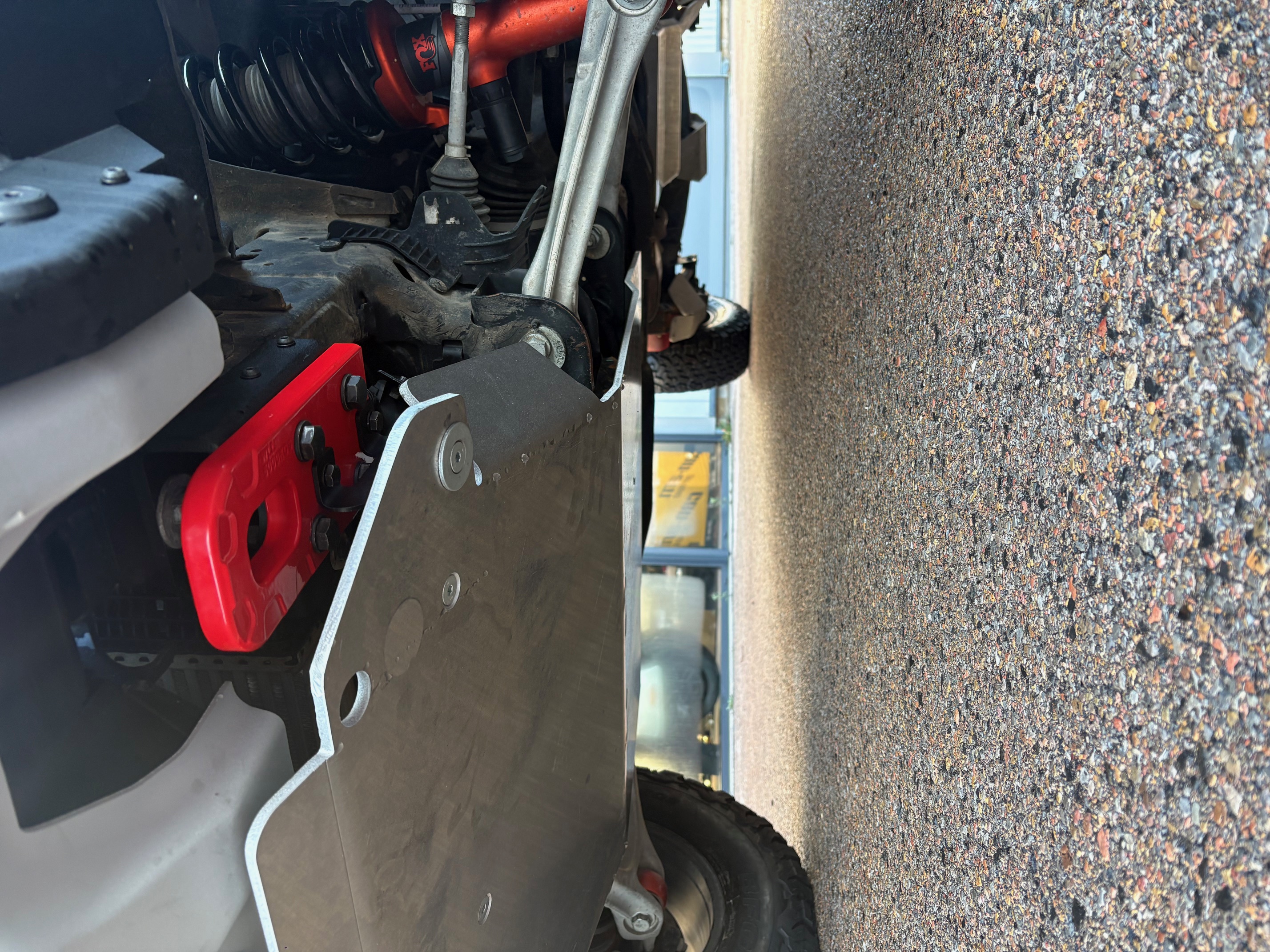 Afin de sécuriser les éléments mécaniques les plus exposés, plusieurs blindages en aluminium ont été installés sous le véhicule.