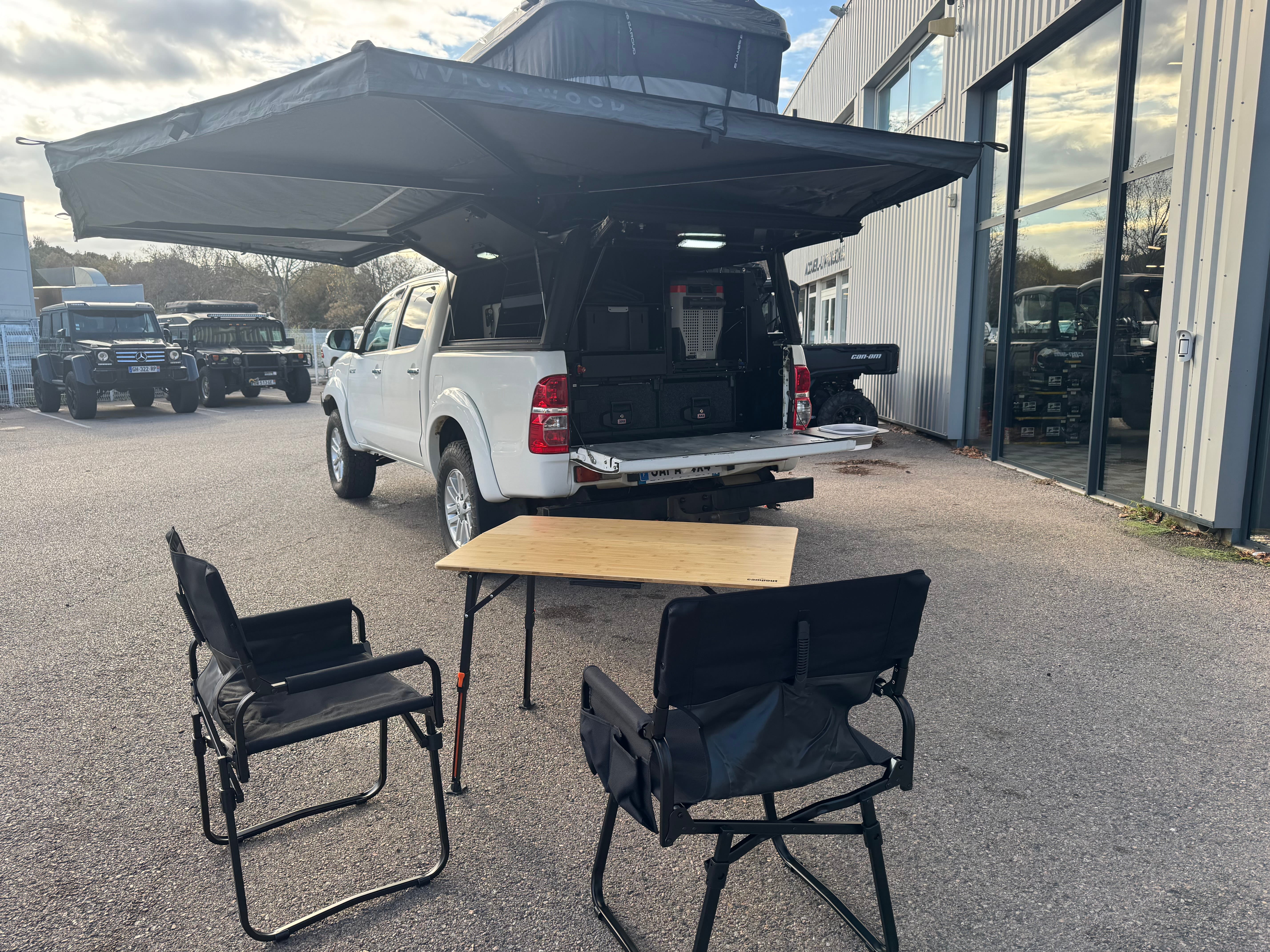 Préparation complète d’un Toyota Hilux Vigo orientée autonomie totale : bivouac, eau, électricité, confort et sécurité. Un véhicule prêt à partir loin, sans dépendre de rien.