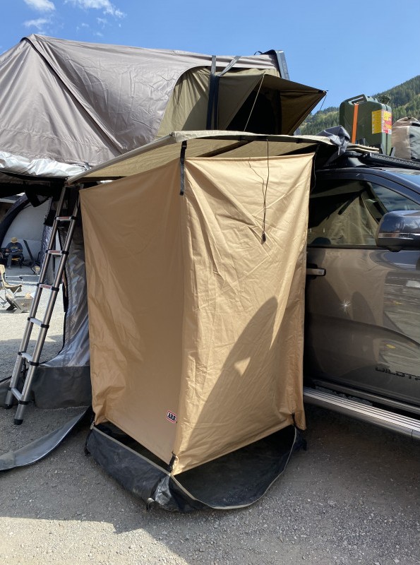 La cabine de douche ARB Touring permet de créer rapidement un espace privé pour vous laver ou vous changer lors de vos bivouacs. Facile à installer sur galerie ou barres de toit, elle dispose d’un plancher intégré, de rangements pratiques et d’un éclairage LED pour plus de confort au campement.