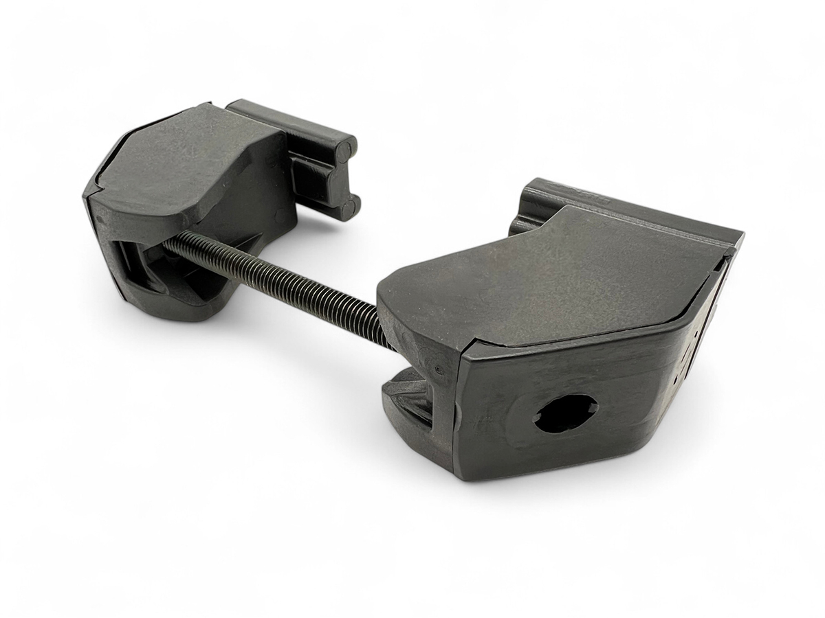 Cette patte de fixation par pincement est une alternative légère conçue pour un montage rapide sur des barres de toit de largeurs variées (jusqu'à 85 mm), destinée à un usage routier standard.