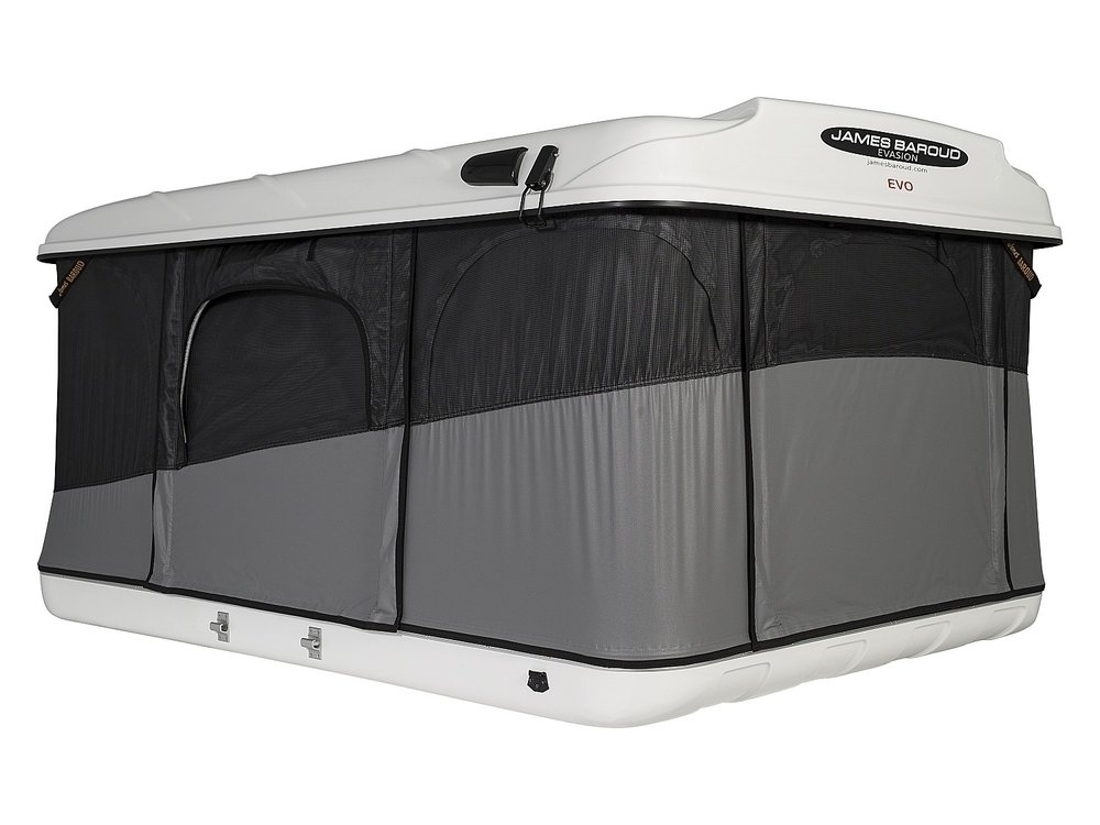 La James Baroud Evasion S EVO est le modèle le plus compact de la gamme Evasion. C’est une tente à coque rigide à ouverture horizontale (pop-up) conçue spécifiquement pour deux personnes, idéale pour les petits véhicules, les vans ou pour ceux qui souhaitent minimiser l'encombrement sur le toit.